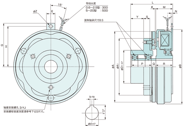 (注)1.內置在通軸軸套上的滾珠軸承外側,請用“擋圈”固定。