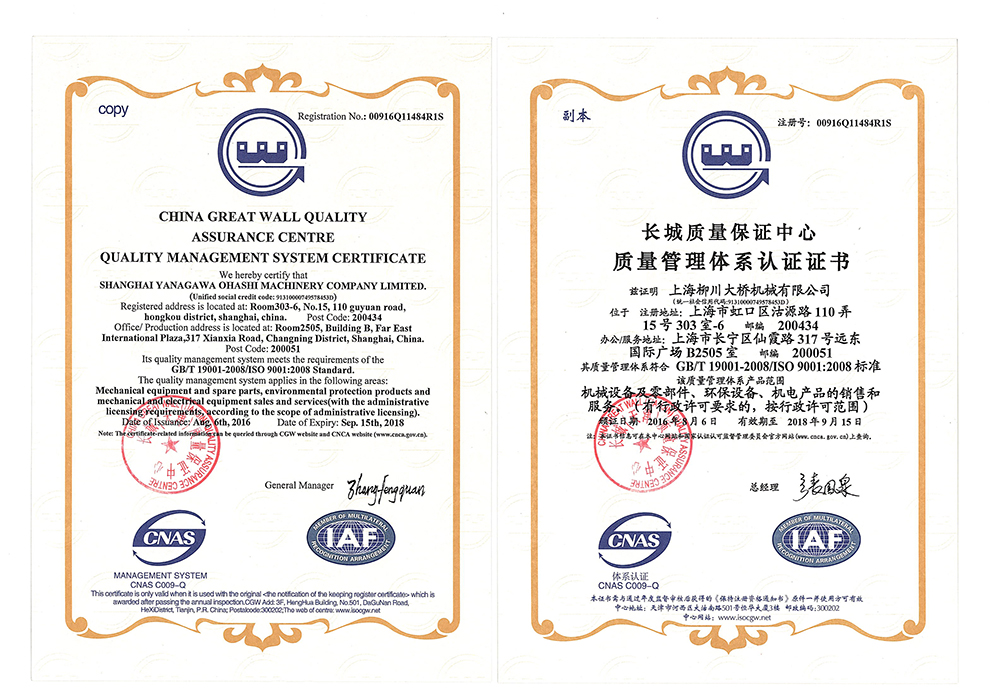 上海柳川大橋機(jī)械有限公司(以下簡(jiǎn)稱:柳川大橋機(jī)械)成立之初就秉持把質(zhì)量放在第一,安全放在心上的質(zhì)量安全理念,正如柳川大橋機(jī)械堅(jiān)持的16字質(zhì)量方針“精心服務(wù)、質(zhì)量至上、顧客滿意、追求卓越”一樣。經(jīng)過全體員工的努力,柳川大橋機(jī)械通過ISO9001質(zhì)量管理體系認(rèn)證,取得認(rèn)證證書也是實(shí)至名歸。