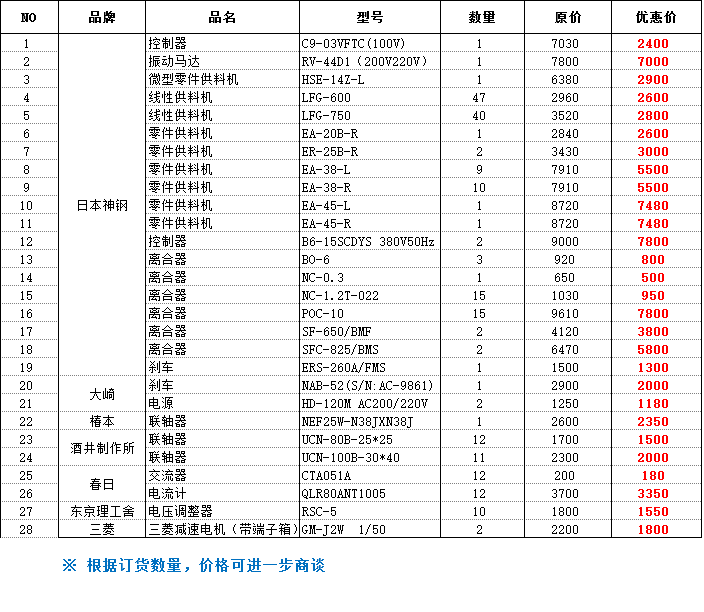 1、以上價格為含稅價,量大可再享優(yōu)惠;